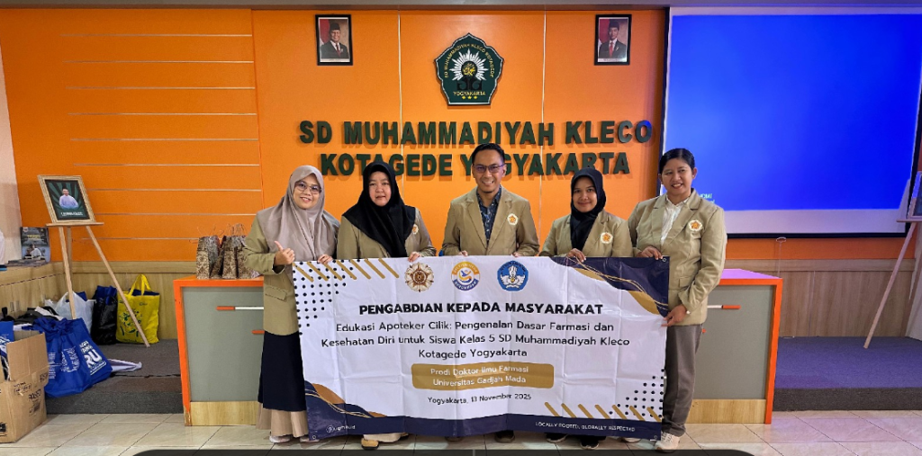 Yogyakarta, 13 November 2025 — Mahasiswa Program Studi Doktor Ilmu Farmasi, Fakultas Farmasi UGM, melaksanakan kegiatan Pengabdian kepada Masyarakat (PkM) bertema “Edukasi Apoteker Cilik: Pengenalan Dasar Farmasi dan Kesehatan Diri” yang ditujukan kepada siswa kelas 5 SD Muhammadiyah Kleco, Kotagede, Yogyakarta. Kegiatan dibuka secara resmi oleh Kepala Sekolah, Hernawan Priyantoro, M.Pd., serta didampingi oleh para pembimbing PkM dari UGM: Dr. apt. Woro Harjaningsih, S.Si., Sp.FRS; Dr. Purwantiningsih, S.Si., M.Si., Apt.; dan apt. Rumiyati, S.Si., M.Si., Ph.D.