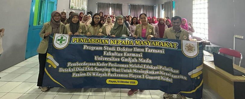 Gunungkidul, Yogyakarta — Mahasiswa Program Studi Doktor Ilmu Farmasi, Fakultas Farmasi Universitas Gadjah Mada (UGM) melaksanakan kegiatan Pengabdian kepada Masyarakat (PkM) berupa penyuluhan bertema “Edukasi Kader Kelola Efek Samping Obat (ESO)” di Puskesmas 1 Playen, Gunungkidul.