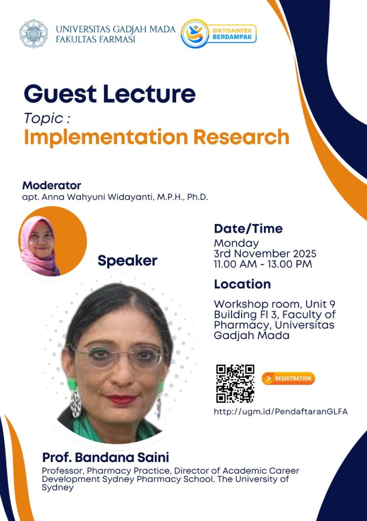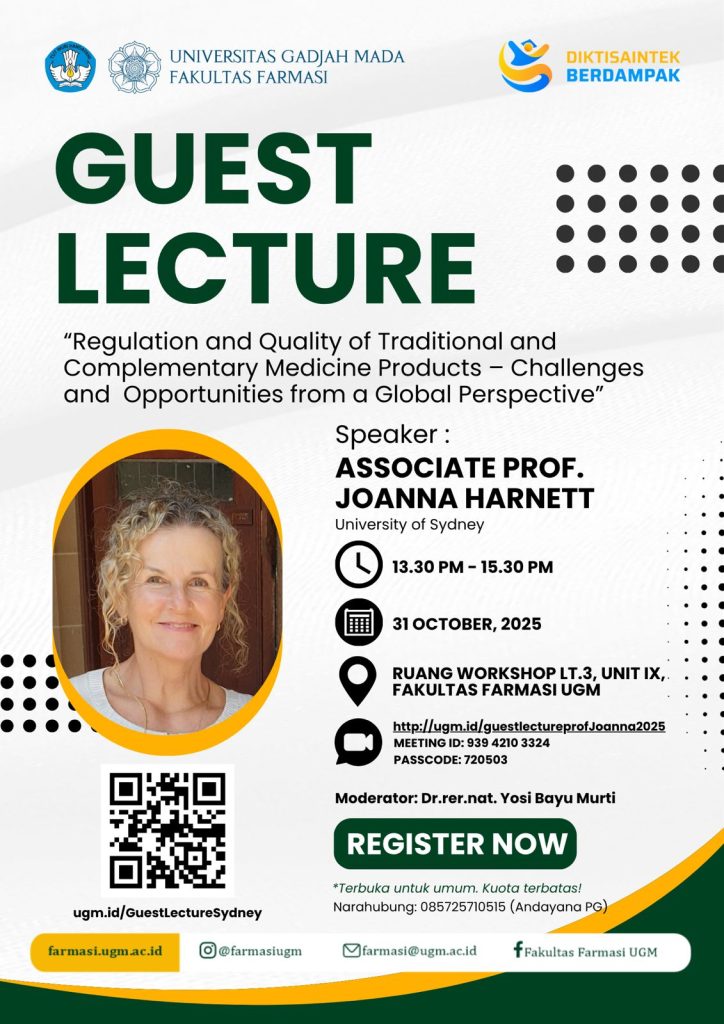 Faculty of Pharmacy, Universitas Gadjah Mada proudly presents a Guest Lecture titled: